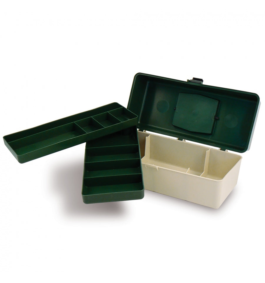 This fishing box is the perfect companion for your fishing trips. This holder has a clasp lid and 2 moving rotating trays inside. This helps to ensure they will stay in the box and won't go missing.