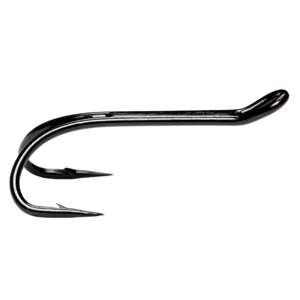 Forged round bend, standard wire short shank hook with slight offset and up-eye. Ideal for salmon, sea trout and steelhead tubes or as flying stinger on a waddington shank and other long shank patterns.
